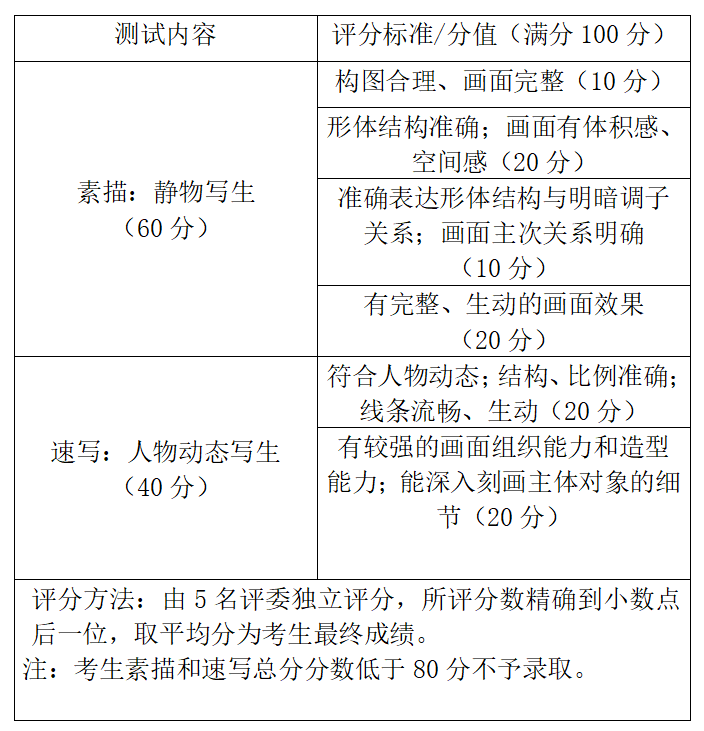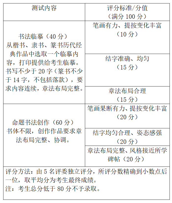 2.专业测试成绩总分未达到80分者不予录取;