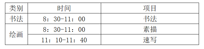 (5)考场配有时钟,考官在距离考试结束还有十五分钟时进行提示,当考官宣布“考试结束,请停止绘画”时,考生须立即停笔,否则按无效试卷处理;