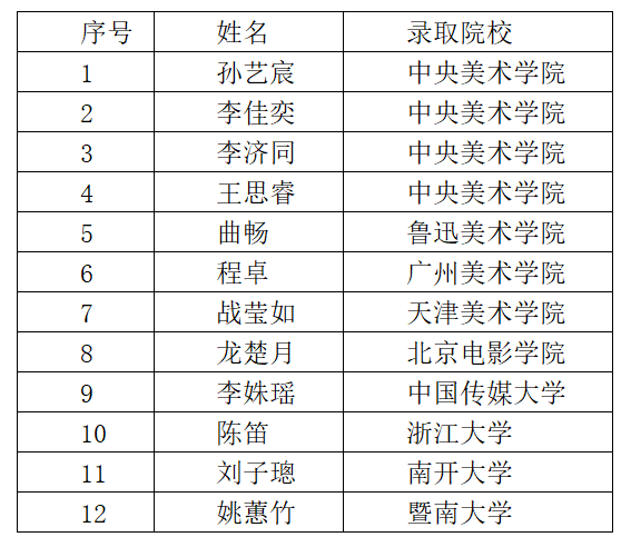 山东省烟台市第二中学是烟台市首批体育美育工作先进学校,2020年被评选为烟台市艺术特色学校;美术类社团焱垚陶艺社被评选为烟台市优秀社团。我校教学设施先进,各类功能教室配备完善。陶艺教室、书法教室、素描教室、手工教室、手绘动漫教室、油画教室、美术欣赏教室等一应俱全,艺术氛围浓厚。在2020年的美术类高考中我校成绩斐然,以下为部分录取信息: