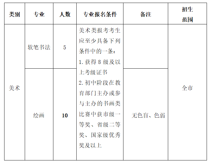 2021年美术自主特长生招生简章