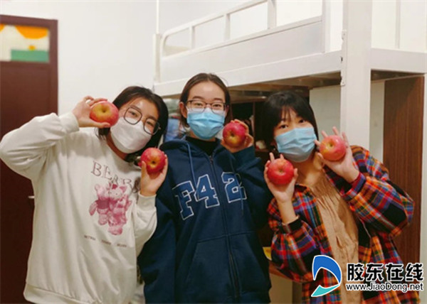 “今天收到了一份来自学校的特殊礼物——苹果,这个在没有疫情时毫不起眼的水果,但在疫情防控校园封闭管理的情况下,出现在我们的书桌上,给我们的生活增加了一抹色彩和欣喜。愿疫情早日散去,愿山河无恙,人间皆安!”2021级特殊教育学院听力与言语学2班李昕烨同学说。