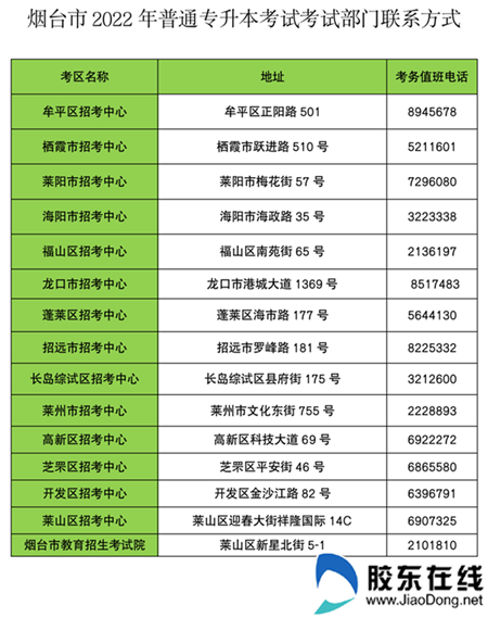 附件:烟台市2022年普通专升本考试考试部门联系方式