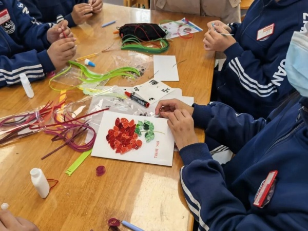 学生们通过衍纸学习,在综合实践学校老师的指导下,大胆挑战衍纸艺术,一根根细长的彩条,在学生们的手中卷动,变出各种姿态。