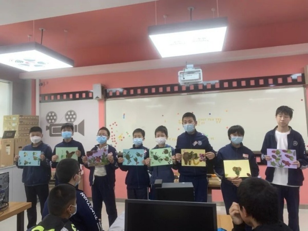 一片片不同的树叶在学生们的手里左拼拼,右摆摆,变成一幅幅精美的树叶粘贴作品。