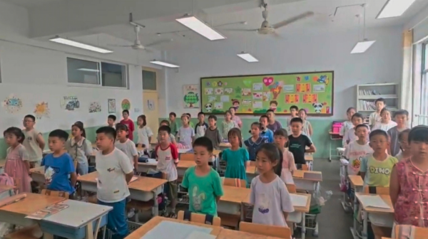 与此同时,“每日一歌”活动同步进行,《我们为你唱首歌》成为校园每日的动人旋律。每日一歌时间,各班教室传出嘹亮歌声,同学们站姿挺拔、神情专注,用稚嫩却真挚的嗓音,将对祖国母亲的祝福融入歌声,回荡在校园各处。