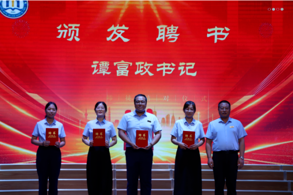 一份聘书,承载的是学校的信任与师父的担当。在庄重的音乐中,纪委书记谭富政为各位师父颁发聘书。师父们依次上台,接过这份荣耀与责任。紧接着,徒弟们双手捧上拜师帖,躬身行礼,表达对师者的敬仰与求学的赤诚。红纸黑字,书写的是青年教师对教育事业的向往与决心。