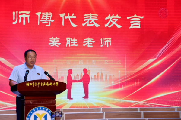 师父代表姜胜老师坦言:“作为师父,我们定将倾囊相授,做徒弟在教学路上最坚实的后盾。同时也希望徒弟们永葆教育热情,勤学善思,勇于创新,早日形成自己的教学风格。”