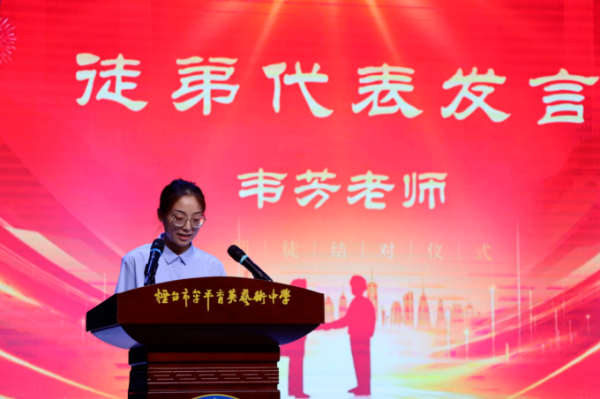 徒弟代表韦芳老师动情地说道:“‘青蓝工程’犹如一场及时雨,为我们新教师打开了专业成长的‘高速路’。我们将虚心求教、潜心钻研、坚守初心,不负师父厚望,不负学校培育。”