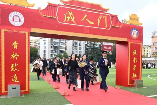 二中学子与父母手挽手,依次走过象征成长阶梯的“成人门”“成才门”“成功门”。每一步跨越,都承载着过往的哺育,每一步前行,都迈向更广阔的未来。