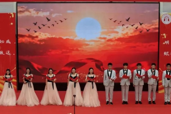 全体学子进行集体朗诵,以青春的名义,许下对家庭、对社会、对国家的庄严承诺。