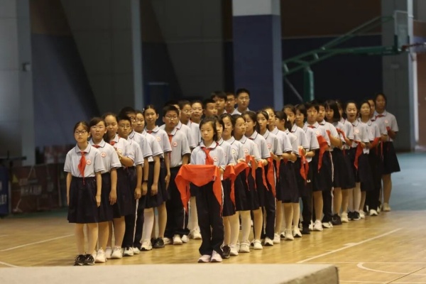 随后,三校区大队辅导员带领学生呼号,铿锵有力的声音回荡在会场中:“准备着,为共产主义事业而奋斗!”“时刻准备着!”