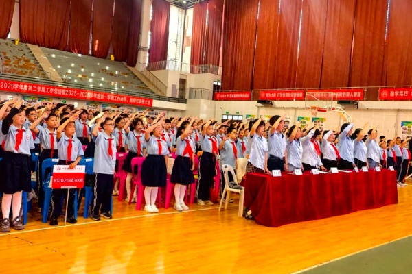 全体少先队员在大队辅导员的带领下,重温入队誓词。