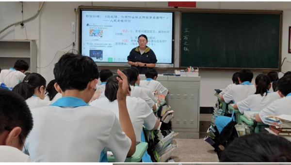 语文学科:文化班毕华静老师执教《五石之瓠》,创新设置“穿越千年辩论赛”情境:学生分组化身庄惠二人,围绕“大瓠之用”展开思辨交锋。在“子谓吾瓠大而无用?”的激辩中,学生深度剖析了庄子“物尽其用”的哲学智慧,课堂充满思辨张力。专业班王迎春老师以战歌《无衣》点燃课堂,通过“三重激越诵读法”——初读感韵律、再读析重章、齐诵悟壮怀,学生在“修我戈矛!与子同仇!”的铿锵节奏里,具身化地感知秦人同仇敌忾的爱国血脉。两节课分别以哲思激活与情感共振诠释了文言教学新范式。