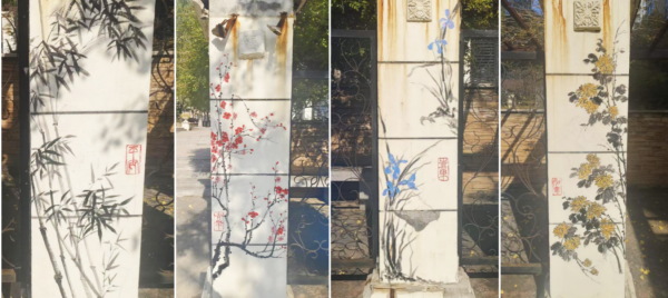 活动现场,师生们分组协作、创意纷呈:墙面组结合社区文化特色,绘制了以“梅兰竹菊”为主题的系列墙绘,色彩明快的图案与周边环境相得益彰;井盖组则发挥巧思,将安全警示、卡通形象等元素融入设计,让原本不起眼的井盖变身“地面艺术小品”。从构图打稿到色彩填充,从细节修饰到成品保护,学生们甚至自发修补墙面裂缝、清理周边垃圾,用实际行动诠释了责任与担当。
