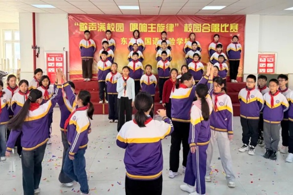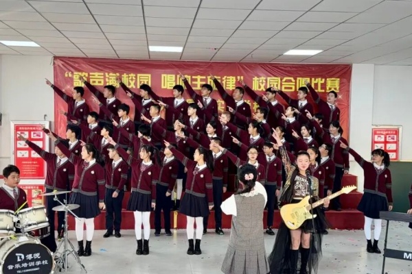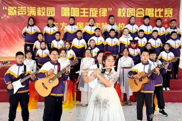 胶东在线12月16日讯(通讯员 谌虹冰 实习编辑 单煜媛)近日,东方外国语实验学校初中部举行一年一度的合唱比赛,以“歌声满校园,唱响主旋律;请党放心,强国有我”为主题,用歌声传递信仰,用旋律礼赞青春。六、七年级的师生以青春之名,唱响时代强音,用一场视听盛宴,献礼伟大时代。