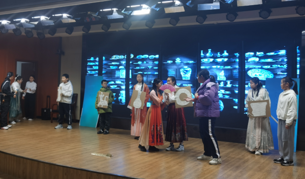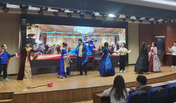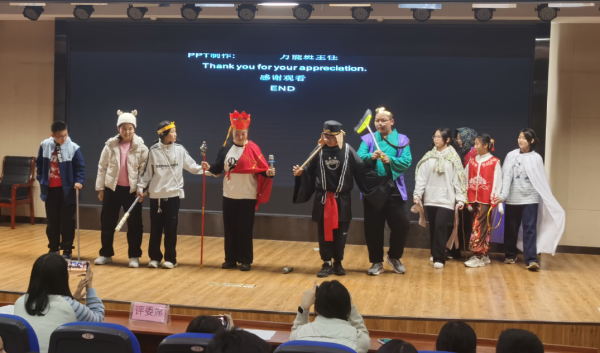 比赛中,参赛班级依次登台,呈现了题材多样、风格各异的英语剧目。既有经典童话《皇帝的新装》《灰姑娘的新魔法》的创意改编,也有中国传统故事《三打白骨精》的跨文化演绎;既有贴近生活的《一个出租车司机》,也有充满想象力的《西尔伯诈骗案》《浪浪山小妖怪》。尤为引人注目的是《逃出大英博物馆》一剧,同学们以流利的英语和生动的表演,传递出对文物回归与文化传承的思考,展现出当代青少年的国际视野与家国情怀。