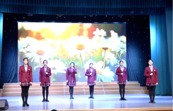 曲丽华、王囡两位老师带来歌曲《好老师》,深情地演唱唱出了对教育事业的热爱与坚守。最后,学校全体相关负责人、师生共唱校歌,激昂的旋律回荡在礼堂。活动尾声,全体班主任与学校负责人在舞台上合影留念,定格下这一温馨难忘的时刻。