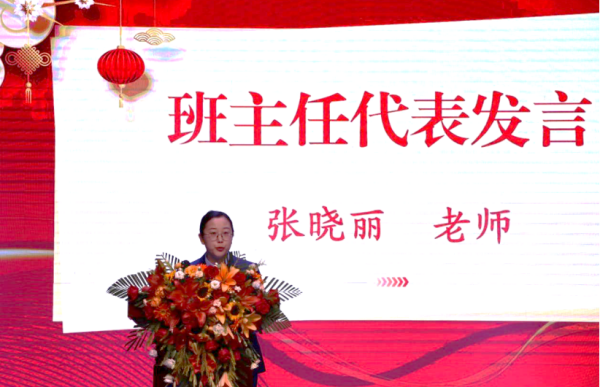 张晓丽老师作为班主任代表发言,她感慨:“马广华老师22年的坚守,陈朋老师21载的耕耘,这不仅仅是数字的累加,更是青春与心血的倾注,是无数个日夜的默默付出与无私陪伴。”台下掌声雷动,致敬他们在育人路上的长久坚守。同时她还分享道:“班主任工作是一场关于‘人’的漫长修行,我们面对的不是冰冷的分数,而是一个个鲜活的生命。这份幸福藏在最细微的日常里,是学生悄悄放在办公桌上的润喉糖,是毕业后一条简单的问候短信。”她寄语同学们“以梦为马,不负韶华”,用奋斗书写精彩篇章。