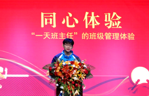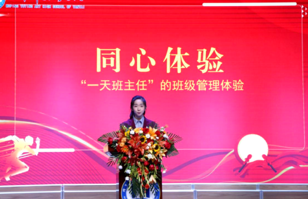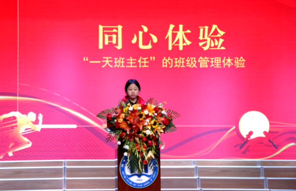 4名参与“一天班主任”体验活动的学生代表带来情景解说。24.6班陈征同学分享了调解同学矛盾的感悟:“班主任没有立刻评判对错,而是让她们慢慢说,教会我们理解与包容。我才明白,她们在‘学生的老师’与‘家庭的母亲’角色间,用超人般的毅力找寻平衡。”24.3班邹昊辰则感慨:“班主任的工作藏着浩瀚如海的细节,课间要化身‘法官’‘医生’‘管家’,连放学都没有真正地‘下班’,这份不易远超我们想象。”