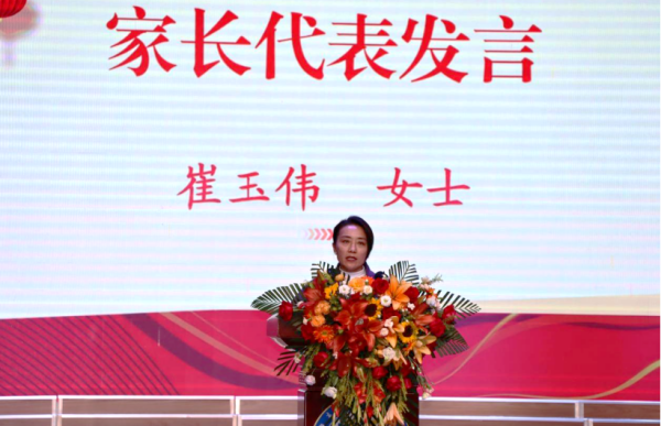 24.7班郝汶忻妈妈崔玉伟女士作为家长代表登台,她讲述了班主任王囡老师的育人故事:“课后她为孩子轻声点拨专业难题,悄悄纠正微小陋习,连我们家长没察觉的情绪波动,都能被她及时疏导。班主任是治学严谨的严师,更是守护心灵成长的‘调音师’。”她代表全体家长感谢学校的悉心呵护,更感谢班主任“于平凡中书写伟大,在琐碎中铸就不凡”。