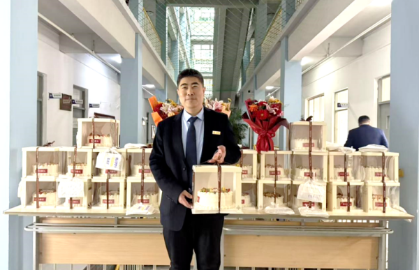 庆典结束,学校为每位班主任精心准备的节日蛋糕已整齐陈列于毓美楼侧厅,奶油表层印刻的“节日快乐”字样饱含着学校对班主任群体的深切关怀。活动结束后,班主任们陆续前往领取专属蛋糕,手中的蛋糕盒虽轻,承载的却是学校对这份育人坚守的厚重认可。领取现场特设拍照打卡区,镜头下,班主任们脸上褪去了些许疲惫,满是被珍视的欣慰与温暖。一张张照片不仅记录下此刻的甜蜜瞬间,更将这份职业的荣光与幸福永久留存,为这场以爱为名的教育之约增添了浓墨重彩的温馨之笔。