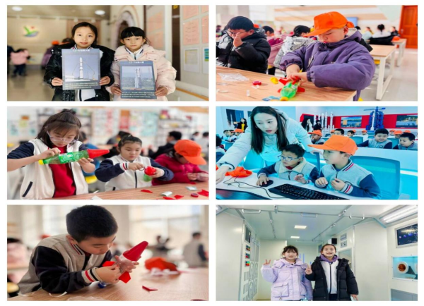 三年级同学在“体验课 + 对对碰”里过足航天瘾,四年级同学则在“水火箭 + 模拟测控”中锻炼动手能力,最后全员解锁“火箭发射密码”任务,用团队协作完成收官挑战。