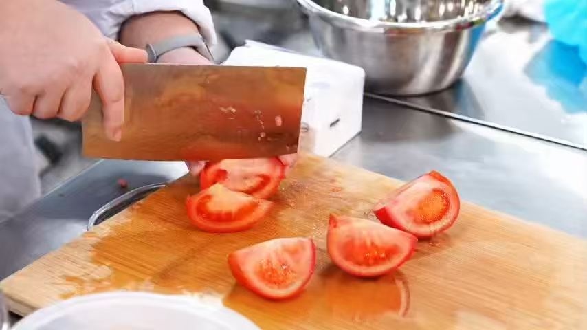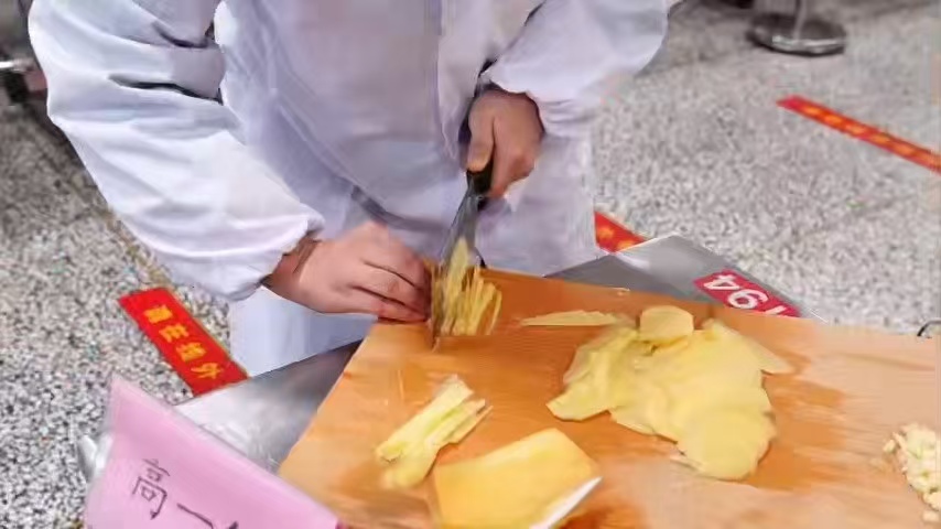 比赛现场,选手们各显神通。有的专注于刀工,将土豆丝切得均匀纤细;有的精心调配调料,力求菜品口味恰到好处;还有的发挥创意,将食材巧妙搭配,制作出造型精美的自选菜品。现场弥漫着诱人的香气,让人垂涎欲滴。