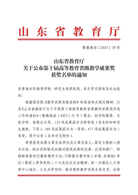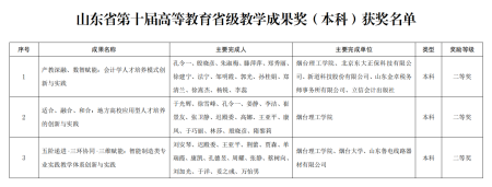 胶东在线1月26日讯(通讯员 宫欣)近日,山东省教育厅公布了第十届高等教育教学成果奖获奖名单,烟台理工学院以第一完成单位荣获二等奖3项,作为参与完成单位获奖5项。
