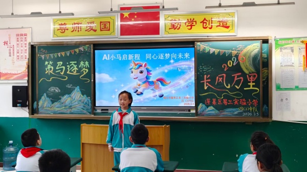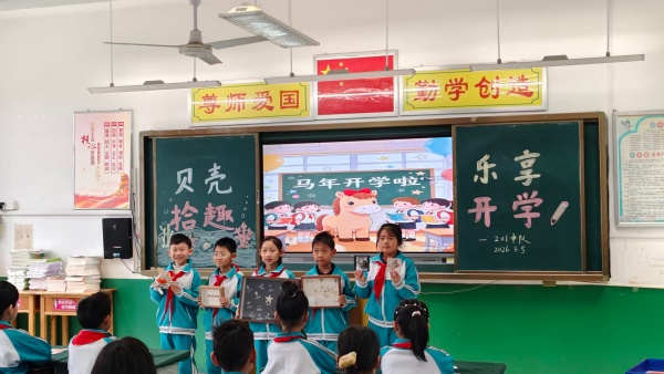 马年开学首日,蓬莱区易三实验小学打造特色开学第一课。同学们玩转马年成语猜猜乐、聆听骏马励志故事,畅谈“新学期我要成为怎样的小马”,结合春晚《武BOT》等节目分享“我家机器人”的趣味经历。假期科学作业、贝壳拾趣、新年故事会等活动同步开展,趣味与寓意兼具,助力学子马力全开、向阳生长。