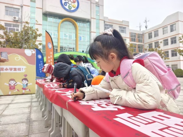 校门口,学生志愿者引导同学们在学雷锋主题横幅上郑重签名,以笔尖践行初心,用行动传递温暖,让雷锋精神在开学第一课中生根发芽;班级内,同学们摆放自主创作的座位铭牌、将新学期心愿投递至“时光胶囊”,讲雷锋故事并共同观看雷锋精神主题短视频,在沉浸式体验中明确成长目标、厚植感恩情怀。全体师生以简洁务实的方式开启新学期,既让孩子们在仪式感中涵养责任与担当,也彰显了学校“润泽生命、和合共生”的教育特色,为新学期成长筑牢精神根基。