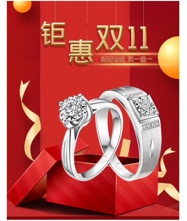 5999元结婚钻戒买一送一,双十一特惠专供,5999元爆款结婚钻戒买一送一,买女戒送同款男戒,给你无底线的惊喜!