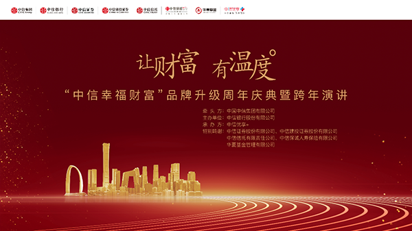 12月30日,“中信幸福财富品牌升级周年庆典暨跨年演讲”活动在线上隆重举行。本次活动由中信集团牵头,中信银行主办,中信优享+承办,协同中信证券、中信建投证券、中信信托、中信保诚人寿和华夏基金5家中信集团金融子公司携手打造,以“让财富有温度”为主题,深入探讨促进共同富裕大背景下的财富管理。