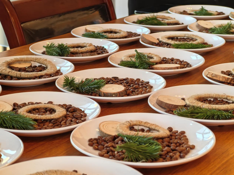 尤为值得一提的是“代际互换”环节。完成的作品并非各自留存,而是在学生与老人之间交换。一颗颗平凡的咖啡豆,经由不同的手,被赋予独特的故事与温度,在互换中完成了情感价值的传递与升华。通过可触可感的共同创造,搭建跨越年龄的沟通桥梁,让年轻的生命力舒缓老年心绪,也让长者的沉稳智慧滋养青春心灵。