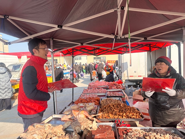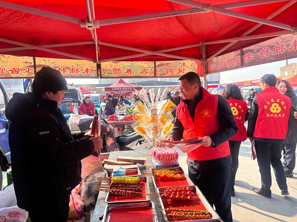 与此同时,在热闹非凡的只楚大集上,另一队“红马甲”的身影在人群中穿梭。他们一边向采办年货的市民和辛苦经营的摊主送上火红的福字,增添节庆喜悦;一边针对集市环境特点,着重提醒中老年朋友警惕“保健品骗局”“低价旅游陷阱”以及各类电信诈骗。“大姨,咱辛苦一年挣的钱,可得捂紧了。天上不会掉馅饼,陌生电话让汇款,一定找子女问问!”“大叔,扫码领礼品有时候会泄露信息,可得留心。”这些带着浓浓方言味、如同邻里唠家常般的叮咛,在喧闹的集市上传递着最为朴素的金融安全常识,守护着老百姓辛苦积攒的过年钱。