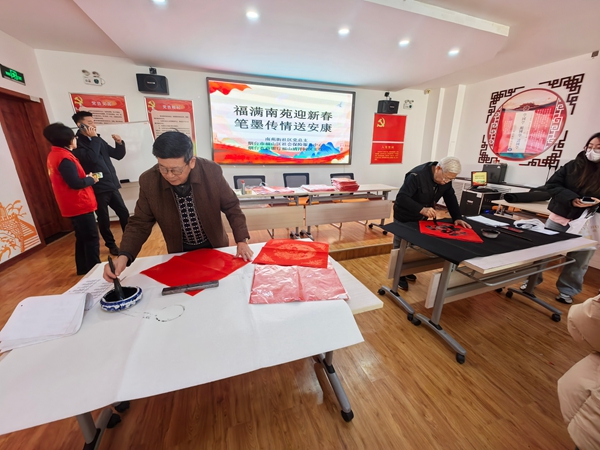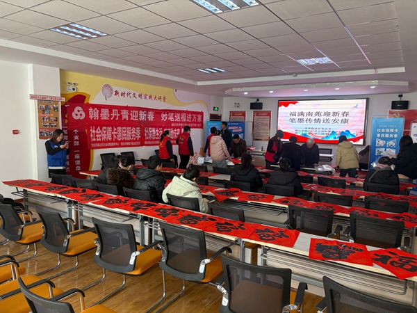 千门万户曈曈日,总把新桃换旧符。“福”代表幸福,寄托了人们对美好生活的向往,而写春联、贴春联是中华民族上千年来流传下来的象征吉祥、表达人们向往美好生活的传统活动。据了解,本次活动共向居民赠送100多幅春联,飘满墨香的春联、福字既展现了传统文化的魅力,传播了书法之美,也蕴含着国泰民安、家和万事兴的美好愿景。