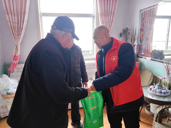 在村委人员的带领下,党员队伍走进张大爷家,将粮油、挂面等慰问品送到他的手中,关切询问他的身体健康和生活状况,帮助他打扫院子。交谈中,该支部党员解答了他社保卡方面的有关疑问,并且千叮嘱万嘱咐不要轻信传销电话,提高防范意识,有问题及时跟村委联系或拨打银行网点的服务电话,临走时嘱咐他要保重身体,注意冬季取暖安全。