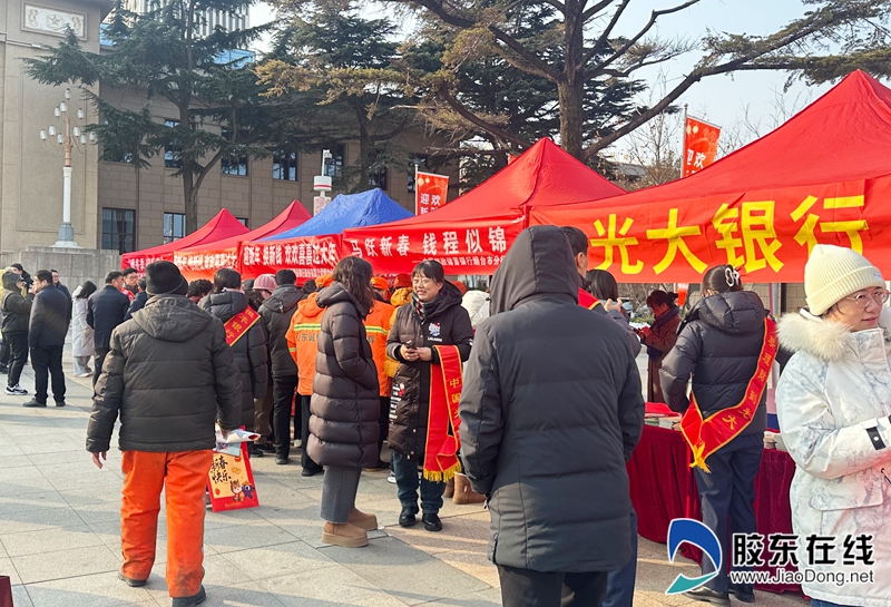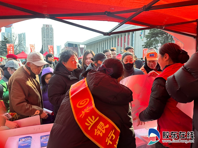 烟台农商行等10多家金融机构在现场设立了咨询服务台,向市民宣传金融知识,并发放新春对联、红包袋、福字贴等具有春节美好寓意的宣传品,吸引了众多市民积极参与。