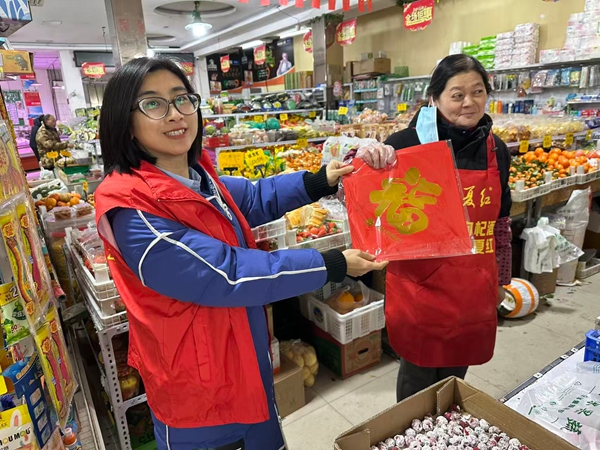活动中,身着红色马甲的党员先锋队穿行于烟火气十足的街巷,逐户走访小微商户,开启“一对一”精准服务模式。他们不仅为商户耐心讲解金融知识,还亲手送上满载吉祥寓意的“福”字与新春对联,将“生意兴隆”“平安顺遂”的真诚祝愿传递到每一位经营者心中,让浓浓年味与暖心服务一同浸润街头巷尾。走访过程中,同时开启“一对一”精准服务模式。面对商户关注的资金周转难题,党员们现场认真记录并推介匹配的特色产品,为商户备货、扩容提供资金支持。结合年终岁末诈骗高发特点,党员们以“拉家常”方式剖析“刷单返利”“冒充客服”等骗局,手把手指导商户安装反诈APP,筑牢财产安全防线。一位百货店主感慨:“烟台农商银行不仅送金融政策到家门口,还教我们守好钱袋子,这份‘年礼’实在!”