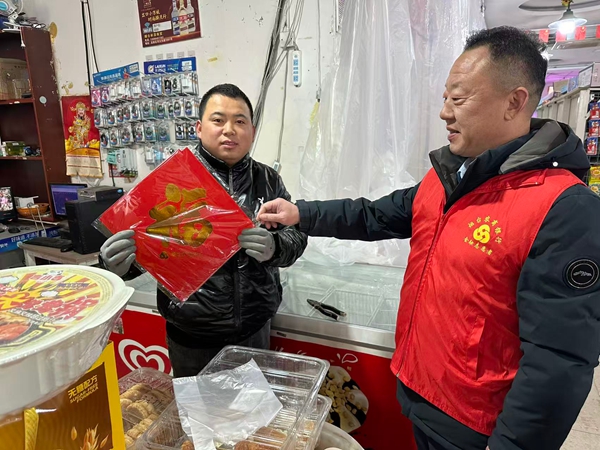胶东在线2月13日讯(通讯员 刘明玉)2026年新春佳节来临之际,烟台农商银行芝罘区世回尧支行党支部联合世联社区党委,走进辖内商圈、集市,开展“党建暖春·金融守护”小微商户专项走访活动。党员先锋队将反诈知识、惠民政策与新春祝福打包成“红色礼包”,送入商户店堂,以有温度、见实效的金融服务擦亮“金融为民”底色,为城市经济毛细血管注入新春活力。