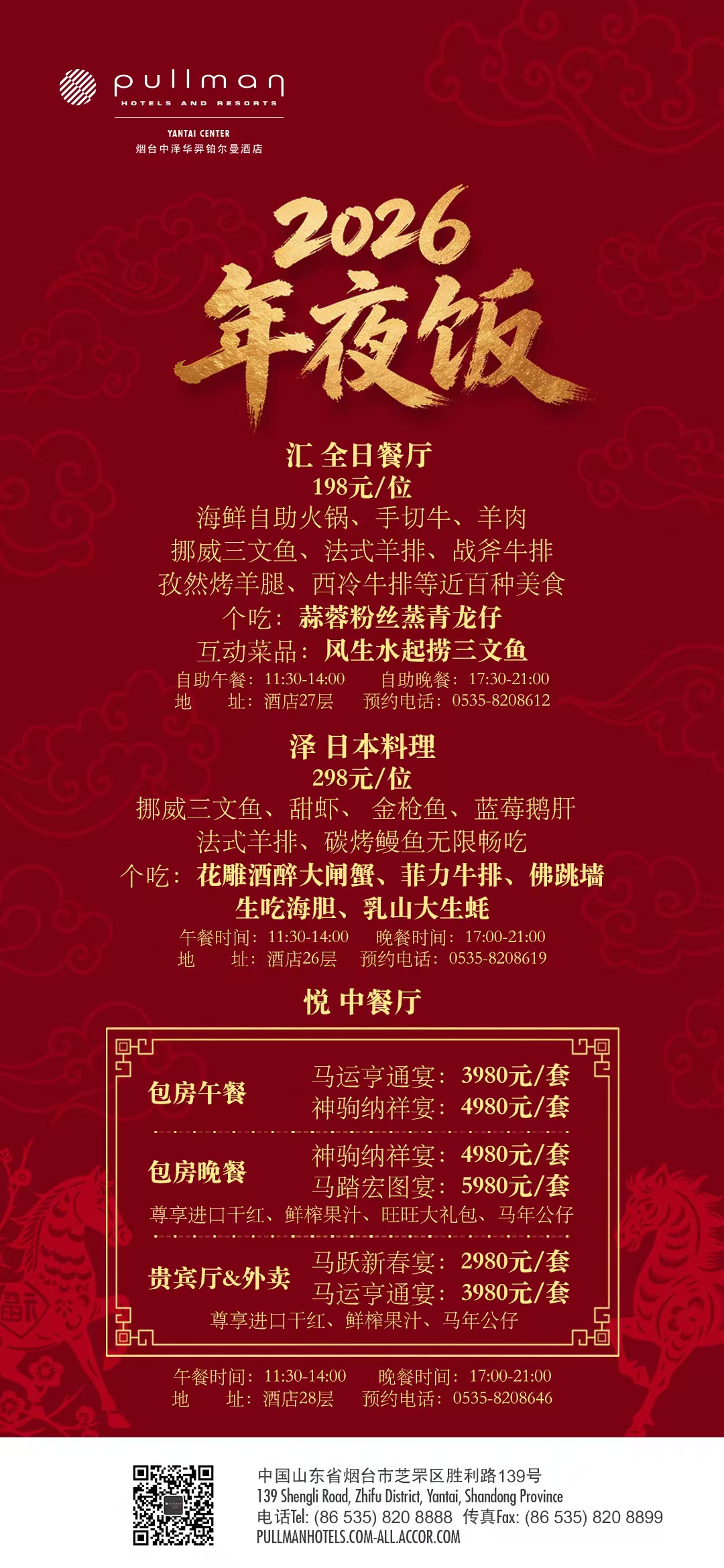 #烟台中泽华羿铂尔曼酒店「年夜饭」火热预订中……