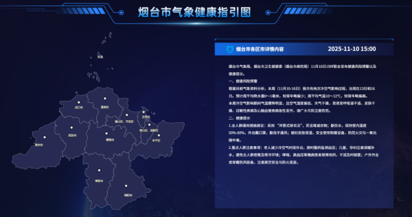 烟台市气象局、烟台市卫生健康委(烟台市疾控局)11月10日15时联合发布健康风险预警以及健康提示。
