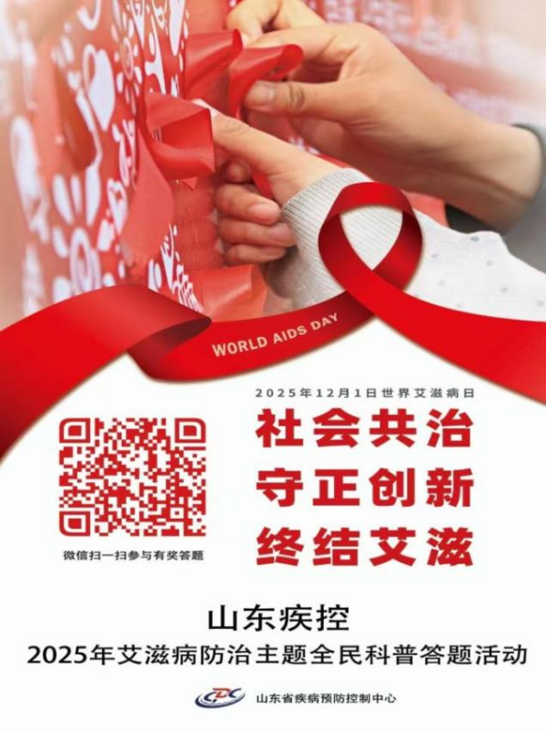 为营造全民参与艾滋病防治的良好氛围,山东省疾病预防控制中心开展线上有奖竞答活动。烟台市疾病预防控制中心诚挚邀请广大市民踊跃参加。本次活动旨在普及防艾知识,提升自我防护意识,您只需动动手指,扫描二维码答题,就能够学习防艾健康知识,还有机会赢取大额红包奖励。守护健康,人人有责。快来扫码答题,为终结艾滋病贡献一份力量吧!