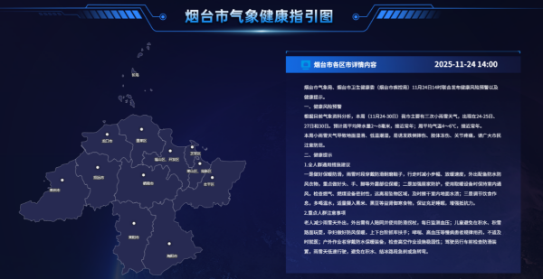 烟台市气象局、烟台市卫生健康委(烟台市疾控局)12月15日14时联合发布健康风险预警以及健康提示。