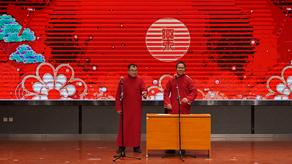 联欢会在热情洋溢的开场舞《舞动中华龙》中拉开帷幕,各工会小组自编自导的歌曲、舞蹈、小品等节目精彩纷呈。《护花使者》《我的未来式》《一条大河》《新年快乐》等舞蹈节目,或优美典雅、国风古韵或青春洋溢、动感十足;《超哥那些事儿》《“性”好有你,“艾”护健康》,朗诵《不朽》等语言节目,有的轻松诙谐、令人捧腹;有的真挚动人、情感丰沛;《我会等》《战马》等歌曲,令人感动之余又鼓舞人心。中心干部职工将本职工作融入表演节目内容中,进一步发挥了文艺作品凝聚人心、陶冶情操的积极作用,让大家在欢声笑语中感受到组织的温暖与力量,营造了积极进取、充满活力的工作氛围。最后,现场全体人员齐唱《我和我的祖国》,将整场演出推向高潮。