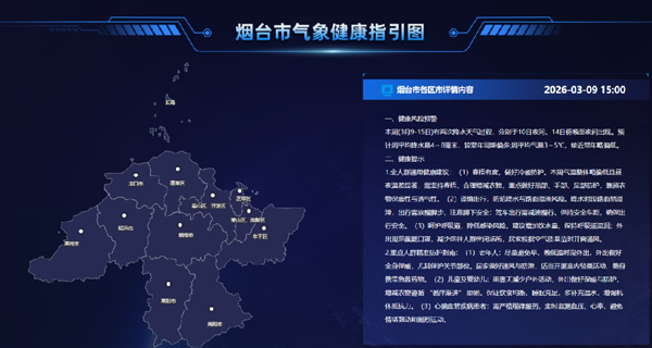 烟台市气象局、烟台市卫生健康委(烟台市疾控局)3月9日15时联合发布健康风险预警以及健康提示。