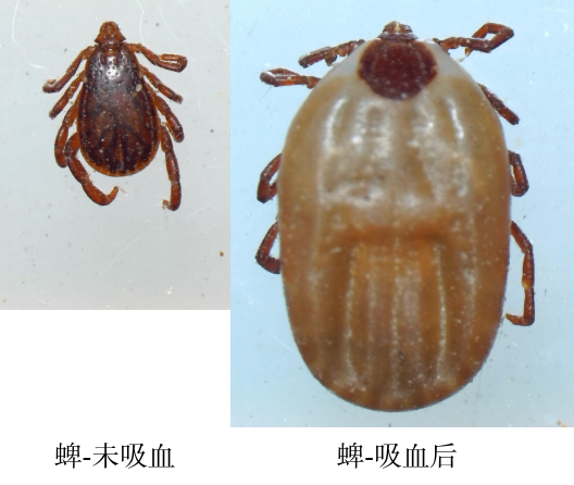 蜱虫堪称微型“吸血鬼”,未吸血时体型扁平如芝麻、米粒大小,吸饱血后身体会鼓起、膨胀十几到几十倍。狗在野外活跃,喜欢到草丛里打滚儿,容易被蜱虫叮咬,在狗身体上吸饱血的蜱虫如黄豆粒大小,因此蜱又被老百姓称为“狗豆子”。蜱不会像蚊子一样快速叮咬吸血,而是缓慢爬行到动物的眼睛、耳朵、腹股沟等皮肤薄弱部位;爬到人身上时,就通过袖口、裤脚等攀爬到腋窝、腹股沟、头皮、颈部、耳后、腰部及腘窝等皮肤褶皱、薄弱部位,然后从头部扎入皮肤吸血。