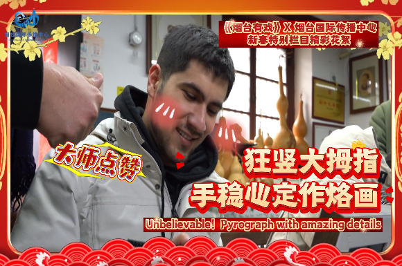 《烟台有戏》×烟台国际传播中心新春特别栏目《“歪果仁”烟台寻年味儿》精彩花絮 EP.04 | 狂竖大拇指,手稳心定作烙画