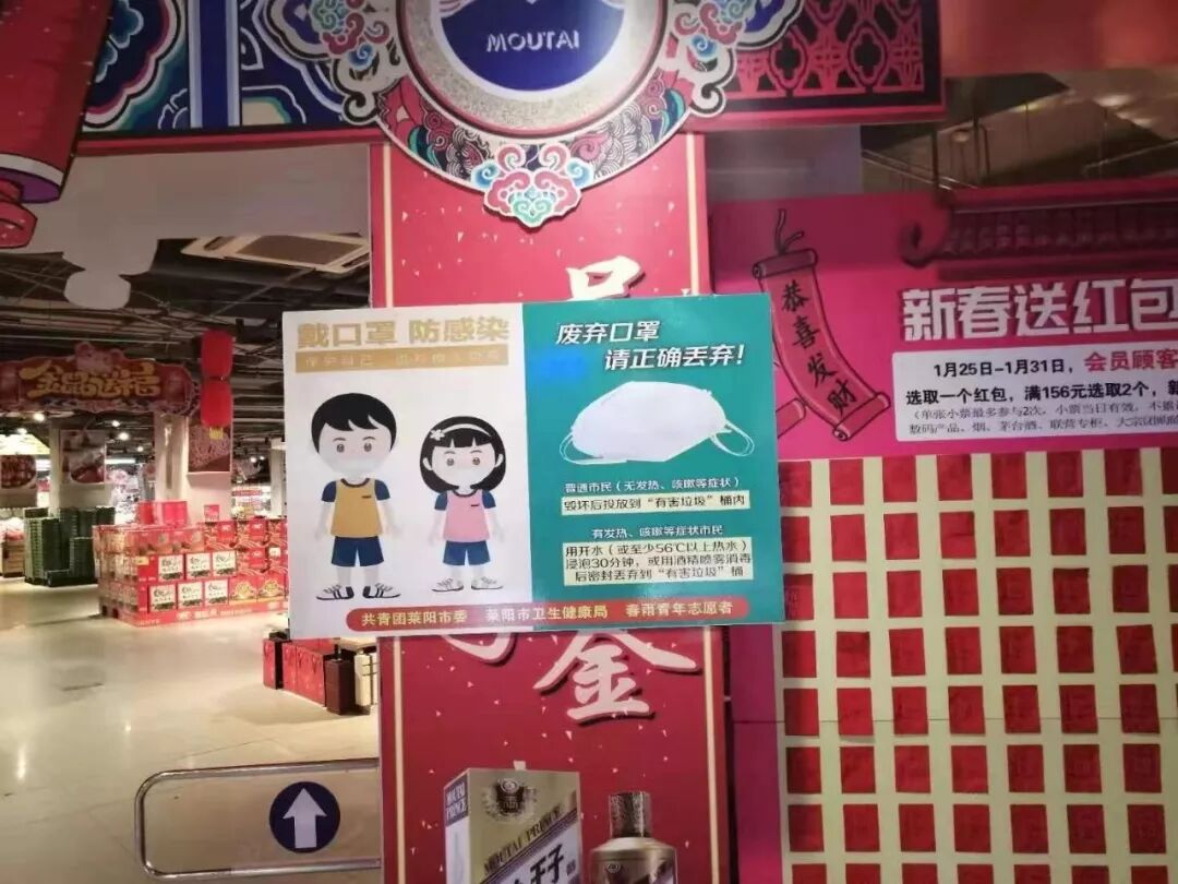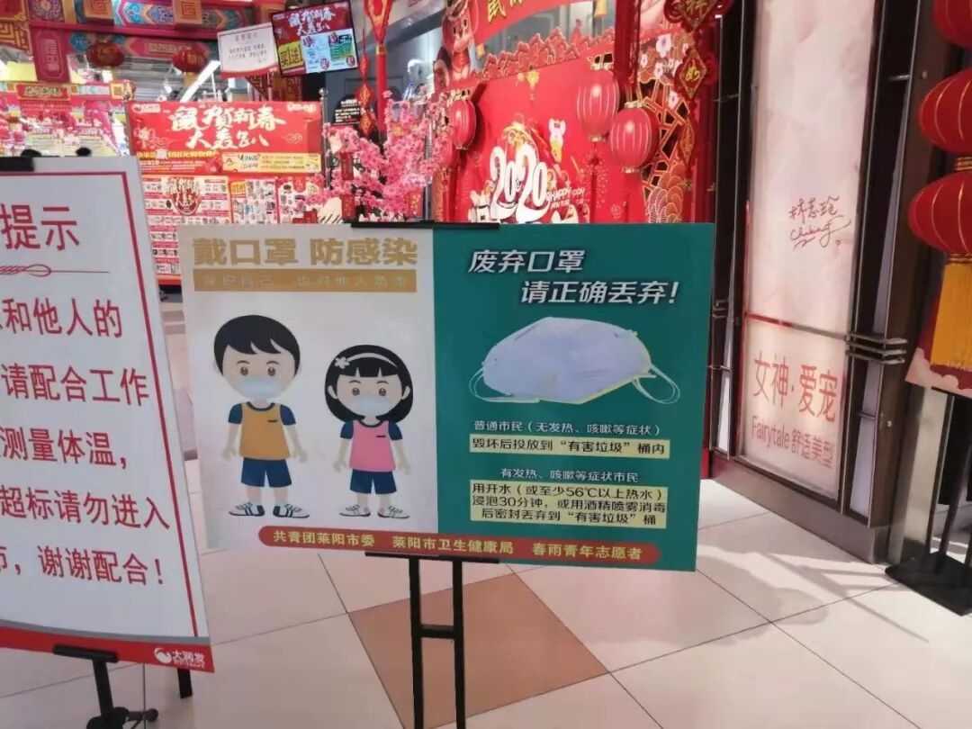 截止目前,开展防控疫情工作以来,共青团莱阳市委动员全市团员青年立即行动,加大疫情防控。积极引导正面科学宣传,发动志愿者在各大商超出入口显著位置,张贴防控宣传标语,全面配合全市疫情防控工作。