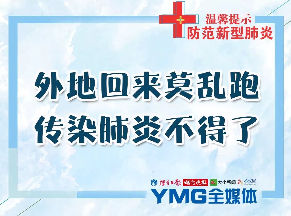 3.期间如有发热、乏力、干咳等症状请立即拨打疾控中心电话,佩戴口罩,等待专用车辆接诊到烟台市毓璜顶医院莱山分院发热门诊就诊。