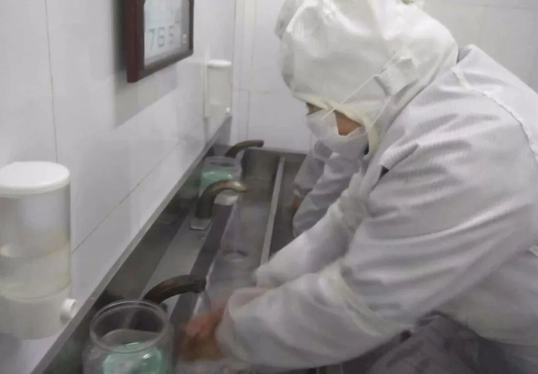 走进刚刚复工的龙口东宝食品有限公司,眼前有序而忙碌。在企业大门门卫处,戴着口罩的员工们排队进行手部消毒、体温测量,登记入册后方可入内。为更好地保障复工复产,公司科学开展疫情防控工作,按照防疫要求做好“进门关”、“防护关”和“入口关”,一线生产工人在进入生产车间时,还要再经历一遍更为严格的消毒措施,同时必须全副武装,保持安全间距,生产现场管控十分严苛。